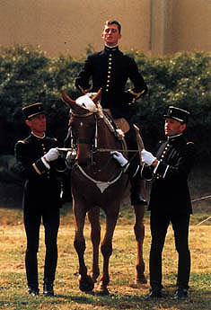De 1789 à 1814, on n'eut pas le temps de pratiquer l'art équestre, et l'Ecole Nationale d'Equitation de Versailles à laquelle succéda l'Ecole d'Instruction des Troupes à Cheval, puis l'Ecole Militaire Spéciale de Cavalerie à Saint-Germain furent des institutions éphémères. L'Ecole de Cavalerie devait être à Saumur... Dès la veille de Noël 1814, le roi Louis XVIII crée à Saumur "l'Ecole d'Instruction des Troupes à cheval". Elle ne fonctionnera véritablement que de 1816 à 1822. Elle fut rétablie par ordonnance du 11 novembre 1824 par le Roi Charles X sous le nom d'Ecole Royale de Cavalerie. Elle comprenait un manège militaire et un manège d'académie dans lesquels on enseignait les principes d'équitation militaire. Les airs relevés y étaient officiellement pratiqués. En 1828, au premier Carrousel, les cadres présentèrent les reprises de Sauteurs et d'Instructeurs. Ces derniers étaient coiffés de l'actuel "Chapeau de Manège", mais la tenue n'était pas noire. Elle le deviendra sous le règne de Louis-Philippe. Le Cadre Noir était né tel que nous le connaissons actuellement et sera, jusqu'à un passé récent, le cadre des instructeurs d'équitation de l'Ecole de Cavalerie devenue l'Ecole d'Application de l'Arme Blindée et de Cavalerie. |