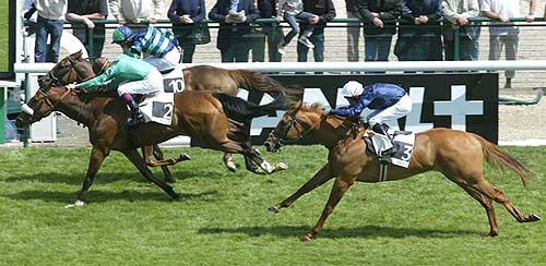 Virginia Waters vient d'enlever avec un brio certain les 1 000 Guinées de Newmarket. Déjà couronnée à deux ans, Divine Proportions entre en piste, pour déclarer continentale l'hégémonie du fils de Miesque, Kingmambo, sur les plus grandes épreuves pour pouliches de trois ans.