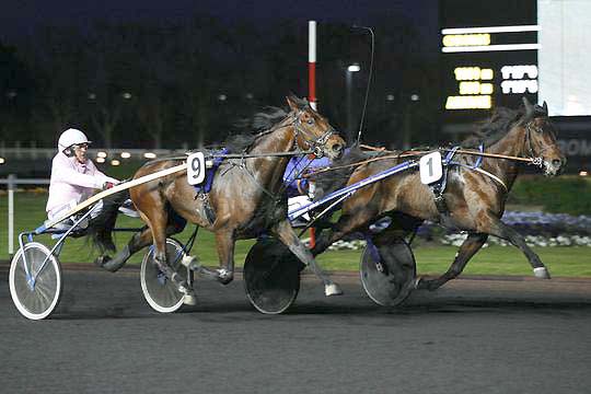 Côté corde, le métronome Unico Limburgia - huit succès de rang durant l'hiver à Vincennes - a trouvé à qui parler. Il va prendre le galop, sur le poteau. Photo APRH