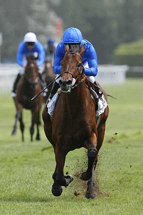 Digne fils du cheval adoré de Cheik Mohammed, Dubai Millennium, vainqueur en 1999, Dubawi, déjà impressionnant dans les Irish 2 000 Guineas puis troisième du Derby de Motivator, domine largement le Prix Jacques le Marois 2005 (Gr.1), sur une profonde et inexorable accélération, en pleine piste.