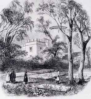 Ce qu'on remarque en premier, c'est une petite bâtisse en brique rouge, élégante bien que massive, crénelée sur tout le pourtour de la toiture avec, dans un angle, une tour ronde, qui domine l'ensemble. Du parfait néo-gothique.